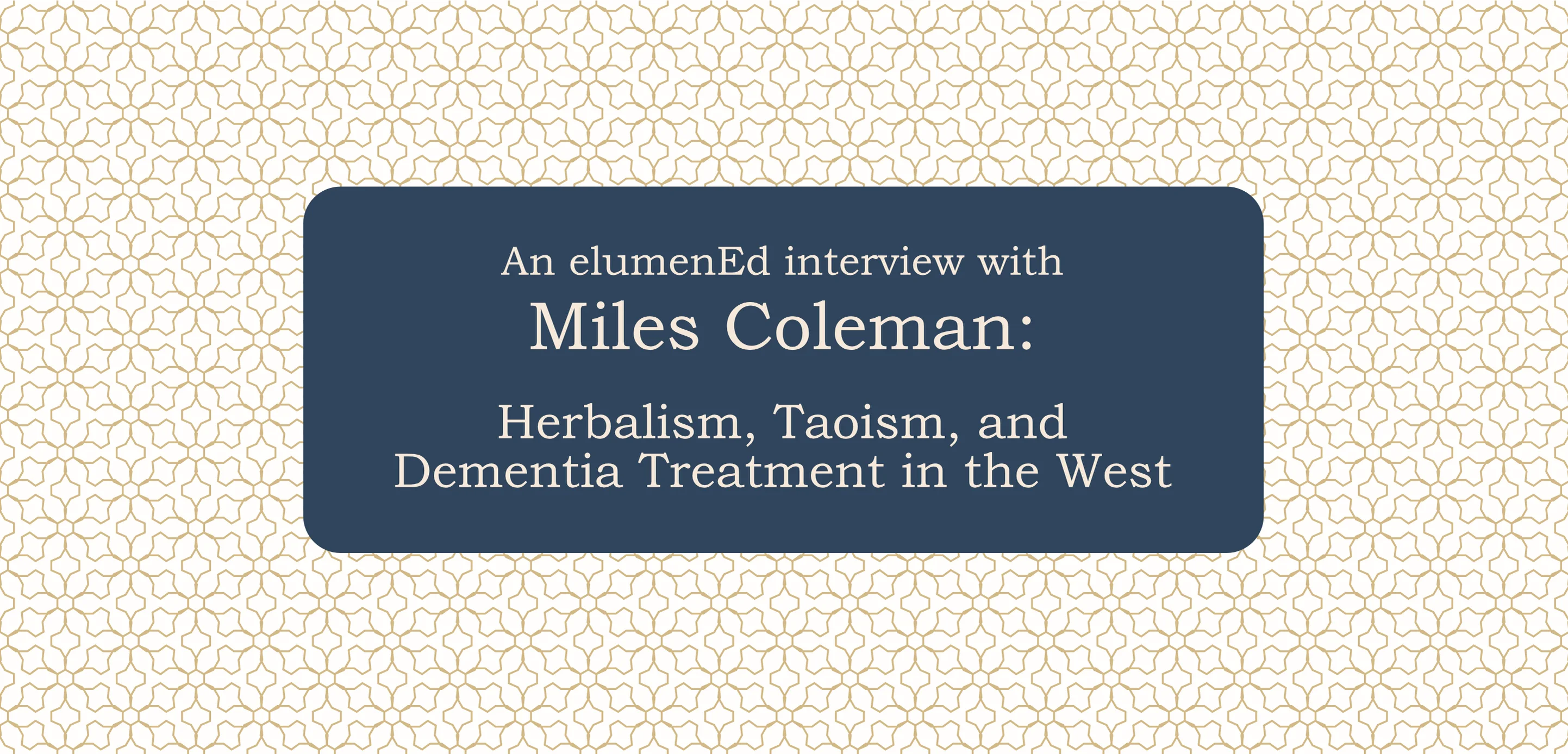 In this wide-ranging chat, I talk with Miles Coleman about some of the basics of the Chinese model of medicine as well as many of the fundamental distinctions between western and eastern understandings of how the body works. We also spend a lot of time discussing how the western and eastern methods of understanding dementia can complement each other when it comes to treatment.