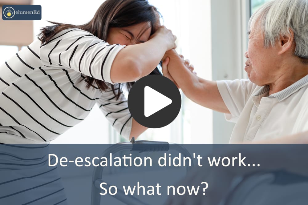 Today’s “corner” tackles a tough subject. What happens when our loved one’s aggression goes beyond the verbal to the physical. We’ve gone past redirection and de-escalation: what do we do when they just took a swing or tried to grab us violently?